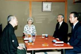 7月3日(月)、三宅龍雄教会長は、大阪市内において、立正佼成会の庭野日鑛会長ならびに酒井教雄理事長と、夕食を共にしながら3時間にわたって宗教界を取り巻く内外の諸問題について懇談した。
