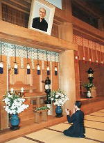On 4th July, Rev. Nichiko Niwano, President of the Rissho Kosei-kai, on 22nd August, Rev. Takeshi Nishida, Chief of Itto-en, Ven. Gijun Sugitani, Secretary-General of the WCRP/Japan, on 25th August, Dr. Takafumi Isomura, the mayor of the city of Osaka, and Rev. Takao Tsue, President of International Religious Fellowship of Osaka, came in order to offer a prayer. Floral pieces were received from Rev. Keiji Sahara, President of Myodo-kai, Ven. Shogo Kobayashi, President of Uenomiya Gakuen School, and Mr. Kansei Nakano, the vice president of Minsyuto, Japan Democratic Party. ・Pray for the World Peace and War Dead The pray for the world peace was served at the sacred hall from 11:00a.m. on 15th August leaded by Rev. Mitsuo Miyake, the Chief Minister Designated. Then the service was held at the ancestor's altar for those who died in the last year and were killed in the World WarU.