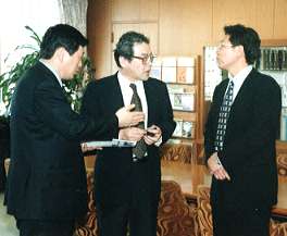 光雄副教会長は、WCRP日本委員会の環境・開発部会の副委員長を務め、3年前に京都で開催されたCOP3(通称:第3回地球温暖化防止会議)の際には、宗教NGOの活動を積極的に展開され、エストラーダ議長を招いて「祈りの集会」を実現させたことをはじめ、その後、COP4(ブエノスアイレス)、COP5(ボン)と毎回、温暖化防止会議に参加された程、環境問題については造詣が深い。 また、政官界に独自のネットワークを形成されている善信執行は、日本ではとかく風通しの悪い行政機構とNGO(非政府機関)との関係を再構築してゆくための方途について、意見の交換を行われた。