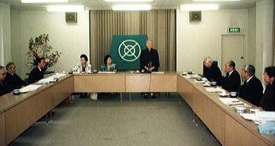 世界連邦近畿協議会は、戦後の「世界連邦運動」高まりによって、大阪府・兵庫県知事をはじめ近畿地方の主な「宣言都市」の市長が役員に就き、宗教界・市民運動グループなどの代表と意見交換を行ってきたユニークな団体である。 今回の例会の最大の課題は、昨年8月31日に逝去した故三宅歳雄会長の後任人事であるが、長年、近畿協議会理事として会長を支えた三宅龍雄金光教泉尾教会長が、全会一致で、新しい世界連邦近畿協議会会長に推戴された。