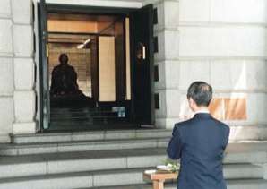 7月4日(火)、立正佼成会の庭野日鑛会長が、泉尾教会先代教会長 故三宅歳雄大人(もとのみやけとしおうし)霊神に参拝するため、泉尾教会に来訪された。