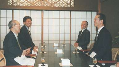 7月3日(月)、三宅龍雄教会長は、大阪市内において、立正佼成会の庭野日鑛会長ならびに酒井教雄理事長と、夕食を共にしながら3時間にわたって宗教界を取り巻く内外の諸問題について懇談した。