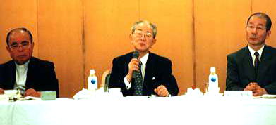 7月3日(月)、立正佼成会京都普門館(京都市東山区)で開催された「国連本部における宗教的・霊的指導者によるミレニアム世界平和サミット」日本派遣団準備会議(事務局長:黒住宗道黒住教教嗣)に、三宅善信執行が出席した。 ミレニアムサミットとは、世界的なケーブルテレビ会社CNNの創業者であるT・ターナー氏の提唱によるもので、本年8月末に、世界各国の宗教的・霊的指導者数百人が一同に会して、新千年紀における地球的課題に対して、宗教者としての態度を表明するものである。 日本からは、久邇邦昭(伊勢)神宮大宮司や渡邊惠進天台座主をはじめとするWCRP日本委員会と世界連邦日本宗教委員会に所属する宗教指導者の中から、約30名が参加することになっており、三宅龍雄教会長も参加する予定である。