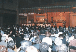 9月24日(日)、会堂広前霊前において「先代親奥様(諡号:三宅ツ子姫)六年祭」が、三宅光雄副教会長祭主の下、仕えられた。 祭事は、先代親奥様の長男である三宅龍雄教会長の玉串奉奠をはじめ、三宅家家族親族、泉尾教会信徒代表らが玉串を奉奠して、故人の遺徳を讃えると共に冥福を祈った。