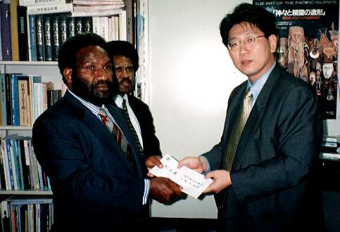 人類共栄会は、昨年夏のパプアニューギニアの津波被害ならびに、今年1月の南米コロンビアの大地震の被災者に対して、両国大使館を通じて、それぞれ義援金10万円を寄託した。昨年7月29日、パプアニューギニア大使館(東京都港区)を訪れた人類共栄会の三宅光雄理事長は、同国のA・オルミ駐日大使と会見し、7月17日に同国北西部を襲い、5,000名近い犠牲者を出した地震津波の被害状況の報告を受けると共に、同大使に人類共栄会からの見舞いの意と義援金10万円を手渡した。 また、2月5日、コロンビア大使館(東京都品川区)を訪れた三宅善信氏(理事長名代)は、同国駐日大使館のギジェルモ・メヒア参事官に義援金を手渡した。同参事官はじめ、当日大使館にいた外交官たちは、被害の大きかったアルメニア地区の現状報告や同国の社会状況について話し合うと同時に、日本から寄せられた物心両面の支援(地震被害対策のノウハウも含めて)に謝意を表し、人類共栄会の活動を賞賛した。 |