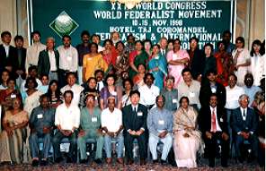 11月10日から14日まで、インドのニューデリーならびにチェンナイ(旧マドラス)で、世界23ヶ国から約250名の参加者を集めて、第23回WFM(世界連邦運動)世界大会が開催された。人類共栄会からは、世界連邦アジアセンター会長を務める三宅龍雄会長以下15名が参加した。 ◆三宅会長が聖火に献燈 10日午後、大会のメイン宿泊施設となったニューデリー市内のYMCAホテルの会議室で評議員会が開催された。ここで、当初、開会式への出席が予定されていたバジパイ首相の参加が急遽取り止めになったことが報告された。インドやアラブ世界では予定の突然の変更は毎度のこととはいえ、今回の会議の波乱の幕開けを象徴するような出来事であった。 午後5時から行われた開会セレモニーでは、和服で正装したの三宅龍雄人類共栄会会長が、インドの伝統である「聖火(会議開催中、燈し続けられる)」への献燈役をした。続いて、ヒンズー教の聖なる舞踊が舞われ、開会式が始まった。世界連邦アジアセンターの会長でもある三宅龍雄師は、WFMの正副会長や事務局長と共に登壇。元英国下院議員のK・ベスト事務局長やカナダ代表のウイルソン上院議員らが挨拶を行った。引き続き、WFM会長であるP・ウスチノフ卿が挨拶を行い、開会式は終了した。 11日は、朝から同ホテルでインド・パキスタン・バングラデシュ等の国会議員を中心に、「連邦主義と民主主義――インドおよび南アジア地域の51年の経験」と題するワーキングセッションが行われた。三宅龍雄師は、人類共栄会が南アジア各国で運営している孤児院や学校などの責任者たちから報告や要望を受ける懇談会に出席した。また、元カシミール州のマハラジャ(藩王)で、ラジブ・ガンジー政権ではインドの駐米大使も務めたカラン・シン博士(TOU会長)とも、インドの核政策について個別の会談を行ったりした。 ◆チェンナイでの諸会合 12日からは、会場を2,000キロも離れたインドにおける世界連邦運動の中心地チェンナイ(旧マドラス)に移し、テーマごとの分科会(1国連の民主化と再構築、2地球共有資産の管理、3開発および貧困廃絶に対する権利、4国際的な法手段による人権の擁護、5紛争を防止するための国際介入、連邦主義と地域主義)や、地域会議(欧州・アジア等)などが行われた。中でも注目されたのは、南アジア各国に8,000人の会員を有し、各地で社会奉仕活動を行っているAYC(世界連邦アジア青年センター)の活動である。スリランカにおける「農村開発運動の教祖」ともいわれるサルボダヤ運動の創始者アリアラトネ博士なども討議に加わって、南アジア各国の現状に即した開発のあり方が真剣に討議された。 13日には、全体会議を行い、各決議事項や新役員人事を承認した。そして、最終日の14日に閉会式と新理事会、さらには会議場を飛び出しての大衆集会などが開催され、無事、5日間にわたる世界大会の幕を閉じた。チェンナイにおける会議は、会長と入れ違いでインド入りした人類共栄会理事長の三宅光雄師(AYC会長を兼任)が中心的な役割を果たして、会議をリードした。 なお、今回の世界大会の期間中、人類共栄会の一般会員10名は、ハイデラバード市郊外のカモン県ムッチェラ村にある社会福祉施設「インド泉光園」を訪問し、人類共栄会の協力によって造られ、近郊住民の飲み水の供給源となっている「大井戸」や学校・孤児院「ミヤケホーム」等を見学し、現地の人々と交流を持った。 |