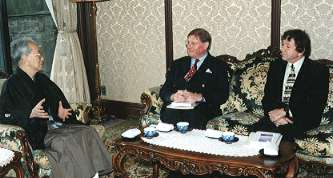 3月15日、英国・ドイツ・オランダ・スイス・フィリピン各国の在阪総領事が泉尾教会に来訪し、三宅龍雄会長と会談した。人類共栄会では、毎年この時期に在阪の各国総領事を招いて、活動紹介や国際情勢に対する意見の交換を行っている。 EUの通貨統合に伴う問題や東南アジア各国の金融危機、さらには核兵器やミサイル技術の拡散防止の問題等について意見の交換が行われた。冷戦体制崩壊以後、世界各地ではかえって民族・宗教紛争が頻発し、軍事力・経済力を中心とした現在の主権国家体制(国連システム)だけでは、対応が不十分になりつつある中で、国籍・民族・宗教等の違いを超えたNGO(非政府機関)の活躍が期待されている。 |