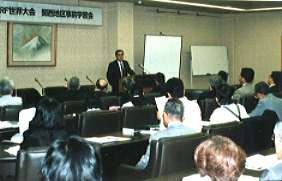 6月19日、泉尾教会国際会議場において、この夏、カナダのバンクーバーで開催される第30回IARF世界大会関西地区事前学習会が、天理大学おやさと研究所と国立民族学博物館から講師を迎え、IARF日本連絡協議会加盟教団からの世界大会参加予定者ら約60名を集めて開催された。 IARF国際評議員でもある三宅龍雄人類共栄会会長の開会挨拶に続いて、まず、文化人類学者の岸上伸啓国立民族学博物館助教授が『カナダの先住民族政策の変遷と諸影響:イヌイットの場合を中心に』と題して基調講演を行った。岸上氏は、長年イヌイット(旧称エスキモー)族の生活現場でフィールドワークを行ってきた研究者として、一般の日本人が持っているイヌイットに対する既成概念が全く間違えていること(例えば、「氷の家」ではなくて暖房付きの住宅に住んでいる)や、同じモンゴロイド系の先住民といっても、白人との関係はイヌイットとファースト・ネーションズ(旧称インディアン)とでは全く異なること。さらには、カナダ連邦政府の先住民やアジアから移民してきた少数民族の権利に対する行き届いた配慮(イヌイット語が公用語になっている準州もある)は、日本政府も学ぶべき点が多々ある等、バンクーバー大会の参加者にとっては、カナダ社会を理解する上で大変いい勉強の機会となった。 続いて、井上昭夫天理大学おやさと研究所所長が『宗教多元主義とグローバリゼーションの行方』と題して基調講演を行った。天理教屈指の国際通として知られる井上師は、現代社会の多様性やグローバル化の様相というものを詳細に分析した後、イスラム原理主義のアフガンゲリラとの交流という自身の異文化体験を通じて感知したものと、これまで日本の宗教界で「諸宗教対話」と称して行われてきた数々のイベントや組織とがあまりにもかけ離れていることを指摘し、本当の意味での宗教対話は、個別の事象に即した実践の中でしか可能ではないということを示唆した。 引き続いて、酒井教雄立正佼成会理事長や西田多戈止一燈園当番らを交えて、本学習会の企画立案を行った三宅善信師の進行のもと、パネル討議が行われた。最後に、IARF会長の山本行隆椿大神社宮司が閉会の挨拶を行って閉会した。 |