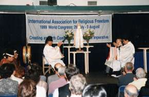1900年にボストンで創設されたIARFは、世界最古の国際的諸宗教協力団体であり、現在は国連経済社会理事会公認カテゴリー1のNGOとして世界的な評価を受けている。昨夏、その世界大会に三宅龍雄会長らが参加した。 7月29日の開会式では、地元バンクーバーの代表者らによる歓迎の辞が、英語・仏語・日本語で述べられた。また、カナダ先住民のひとつの長、L・ジョージ氏と、IARFの会長を務める椿大神社宮司山本行隆師が挨拶を行った。 翌30日の全体集会では、ニューヨークの地球教育協会のP・ミッシェ会長と英国国教会のバンクーバー主教M・インガム師が基調講演を行った。 IARFの世界大会では、専門家からの論文・発表形式の研究部会が開催されるが、今回は7つの分野において研究部会が設定された。中でも、IARF日本連絡協議会が企画した第4部会「霊性の涵養」は一番の盛況で、共同議長を務めた三宅善信師とG・リーブス博士らよる深い洞察力と軽妙な受け答えで、大いに盛り上がった。