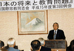続いて、平成15年度の納会が開催された。開会の挨拶を国宗常任理事の平岡英信清風学園理事長が行い、三宅龍雄理事長の発声で乾杯し、開宴となった。1990年の湾岸戦争時に、法務大臣を務めていた国宗理事の左藤恵大谷学園理事長から、米軍の軍事作戦執行中の生々しい深夜の臨時閣議の様子などが紹介されるなど、興味深いディナーとなった。最後に、国宗監事の葛葉睦山臨済宗桂香寺前住職の閉会の祈りでお開きとなった。