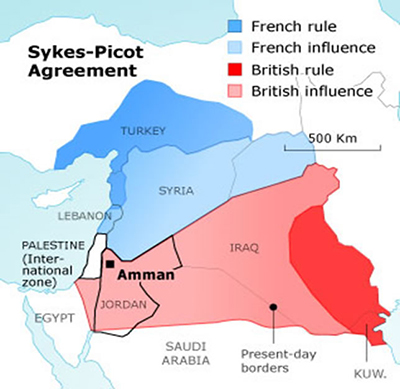 英仏間の「サイクス・ピコ協定」による「中東」の分断