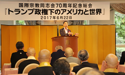 皆様、こんにちは。ただ今ご紹介いただきました村田晃嗣でございます。本日は70周年を記念する集まりということで、大変おめでとうございます。今、三宅善信先生からご説明がありましたが、国際宗教同志会は、牧野虎次、湯浅八郎といった私共同志社大学の大先輩が中心となって設立された団体ということですが、そのような集まりにお呼びいただき、大変光栄に存じます。今からまず1時間お話をさせていただき、その後に質疑応答に移らせていただきたいと存じます。