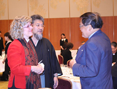 また、昨年、三宅善信代表が事務局長を務めたG8宗教指導者サミット2008の活動を継承するカナダでのG8宗教指導者サミット2010の諸宗教パートナーシップ委員長のカレン・ハミルトンカナダ協会協議会事務総長を亀井静香氏に紹介した。ハミルトン博士は、2000年の国連ミレニアムサミットで、世界の首脳たちによって採択された『ミレニアム開発目標(MDGs)』の実現をG8各国の政府に迫るという活動を推進しており、日本の政界に太いパイプを持っている三宅代表を通じて日本政府にも働きかけることを依頼すると同時に、三宅代表を、来年6月にウイニペグで開催されるG8宗教指導者サミット2010の「フルパートナー」に指名した旨を発表した。