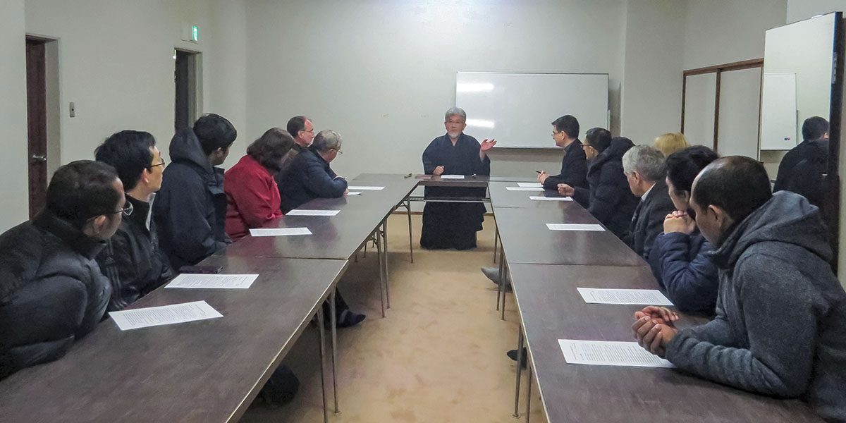 2020年2月22日、カトリック大阪大司教区諸宗教対話委員長のロッコ・ビビアーノ神父の案内で、日本で伝道活動を展開しているカトリック教会の外国人神父修道士一行12名が金光教泉尾教会を訪れ、三宅善信師から「金光教の歴史と救済観」について、英語でレクチャーを受け、質疑応答を行った。大学院レベルまでキリスト教の神学教育を受けた三宅師は、カトリック神父にも解りやすい神学概念を用いて、日本オリジナルの宗教である金光教について講義した。